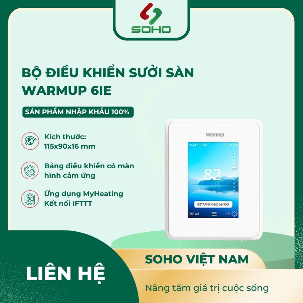 Nếu bạn đang lắp đặt hệ thống sưởi ấm dưới sàn nhà và chưa biết nên chọn loại thiết bị điều khiển nào thì 6iE Smart Wifi sẽ là một gợi ý tuyệt vời. Và đặc biệt, nếu bạn đang lựa chọn thiết bị làm ấm không khí của warmup thì hãy lựa chọn ngay bảng điều khiển 6iE. Được sản xuất độc quyền bởi Warmup-Anh và Soho là đơn vị duy nhất tại Việt Nam phân phối dòng thiết bị này. Để được tư vấn và hỗ trợ thêm thông tin về sản phẩm. Quý khách hàng vui lòng liên hệ ngay Soho theo hotline: 0934.452.678 để được giải đáp kịp thời.