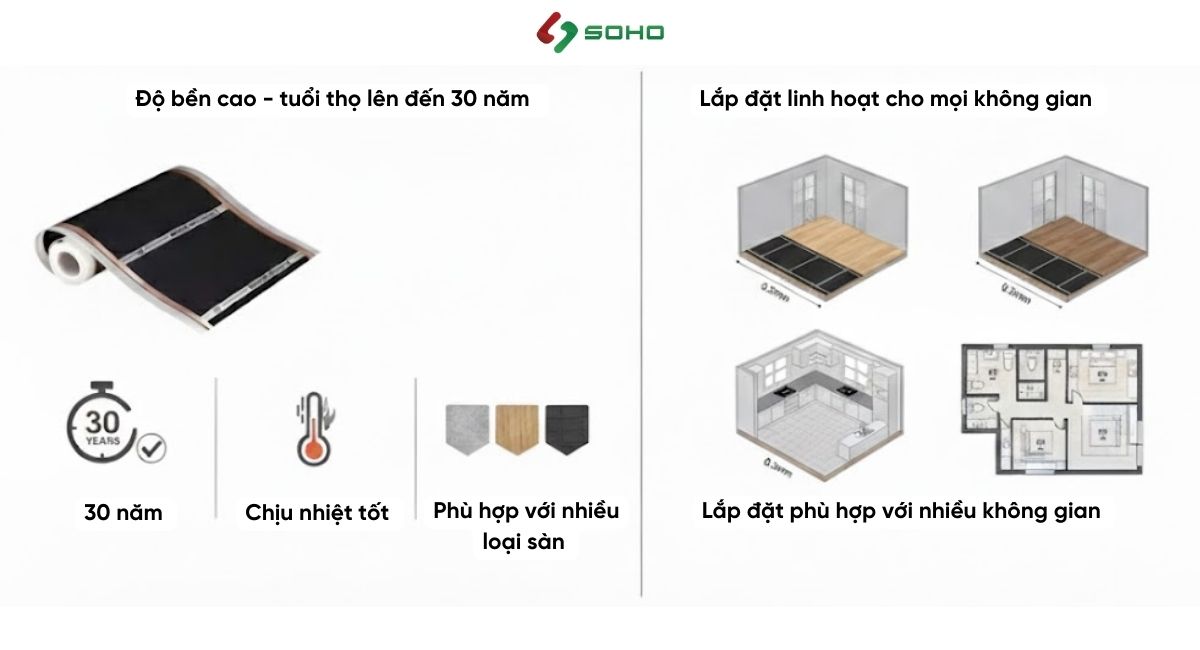 Nếu bạn cần tư vấn chuyên sâu hoặc báo giá chi tiết cho từng diện tích, hãy liên hệ ngay SOHO – đơn vị thi công film sưởi sàn uy tín hàng đầu Việt Nam.