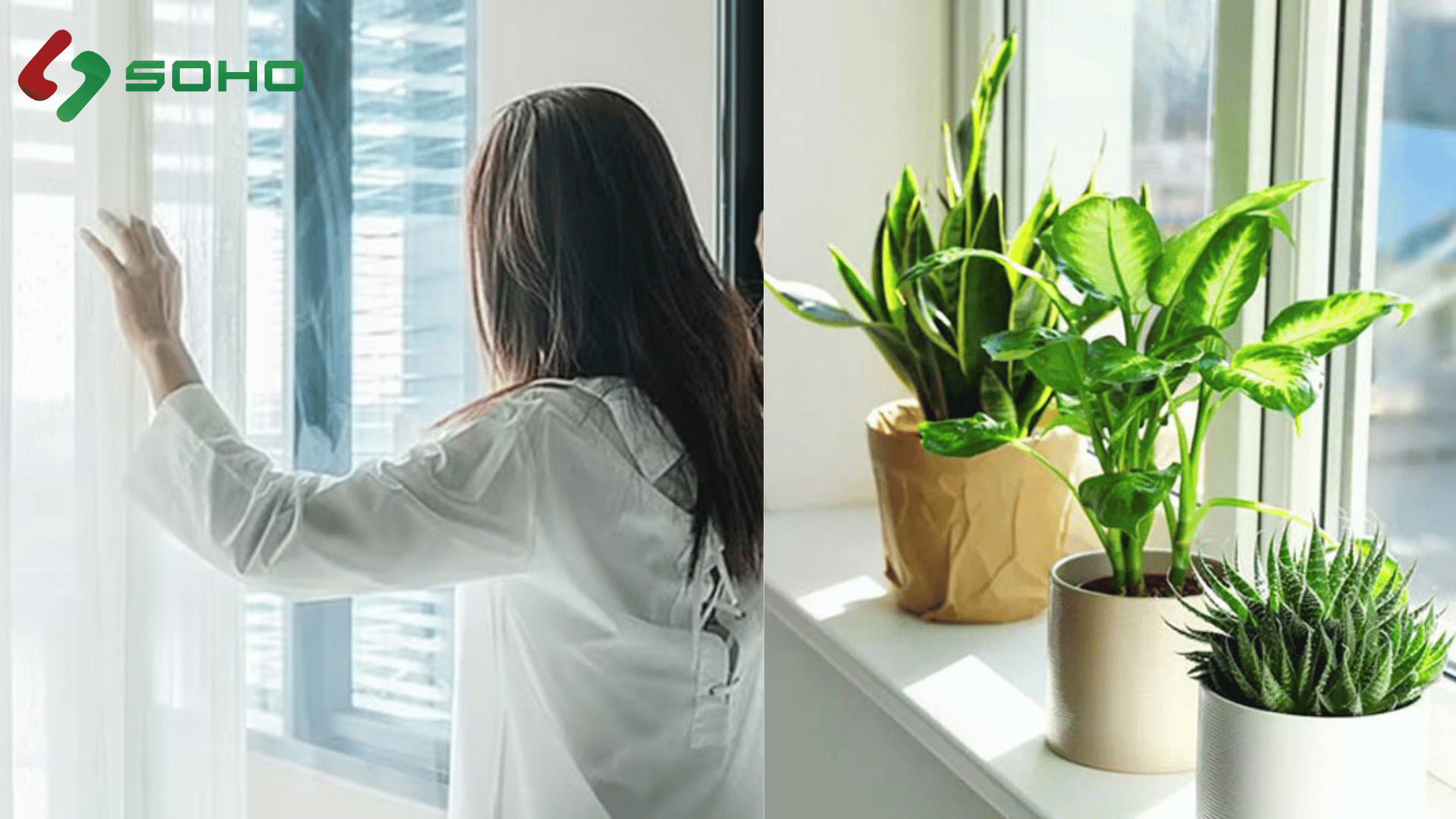 Mở cửa sổ: Tận dụng luồng không khí tự nhiên bằng cách mở cửa sổ thường xuyên, đặc biệt vào buổi sáng hoặc tối khi không khí bên ngoài trong lành hơn. Giải pháp này giúp lưu thông không khí nhanh chóng, giảm nồng độ CO2. Tuy nhiên, hiệu quả phụ thuộc vào chất lượng không khí bên ngoài và vị trí căn hộ. Nếu ở khu vực ô nhiễm cao hoặc gần đường lớn, có thể đưa thêm bụi bẩn vào nhà. Để tối ưu, nên lắp đặt lưới chắn bụi hoặc chỉ mở cửa khi chất lượng không khí ngoài trời tốt.