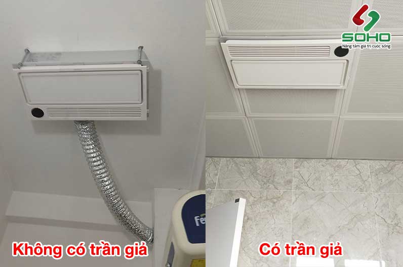 Nếu bạn không có trần giả thì cũng đừng lo lắng. Vẫn có thể lắp đặt được quạt sưởi âm trần yeelight không cần trần giả. Tuy nhiên, về mặt thẩm mỹ chúng sẽ không được đẹp khi hoàn thiện bởi toàn bộ phần thân máy và ống dẫn đều sẽ lộ ra ngoài. Do đó, nên cân nhắc kỹ trước khi lắp đặt.