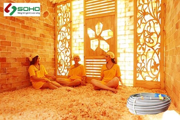 Cáp sưởi sàn hồng ngoại Enerpia không chỉ ứng dụng lắp cho phòng xông hơi truyền thống: đá muối, hồng ngoại, đá muối Himalaya mà còn có thể lắp cho phòng xông hơi kiểu Hàn Quốc - Jjim Jil Bang đang dần phổ biến ở Việt Nam mặc dù chưa lâu.