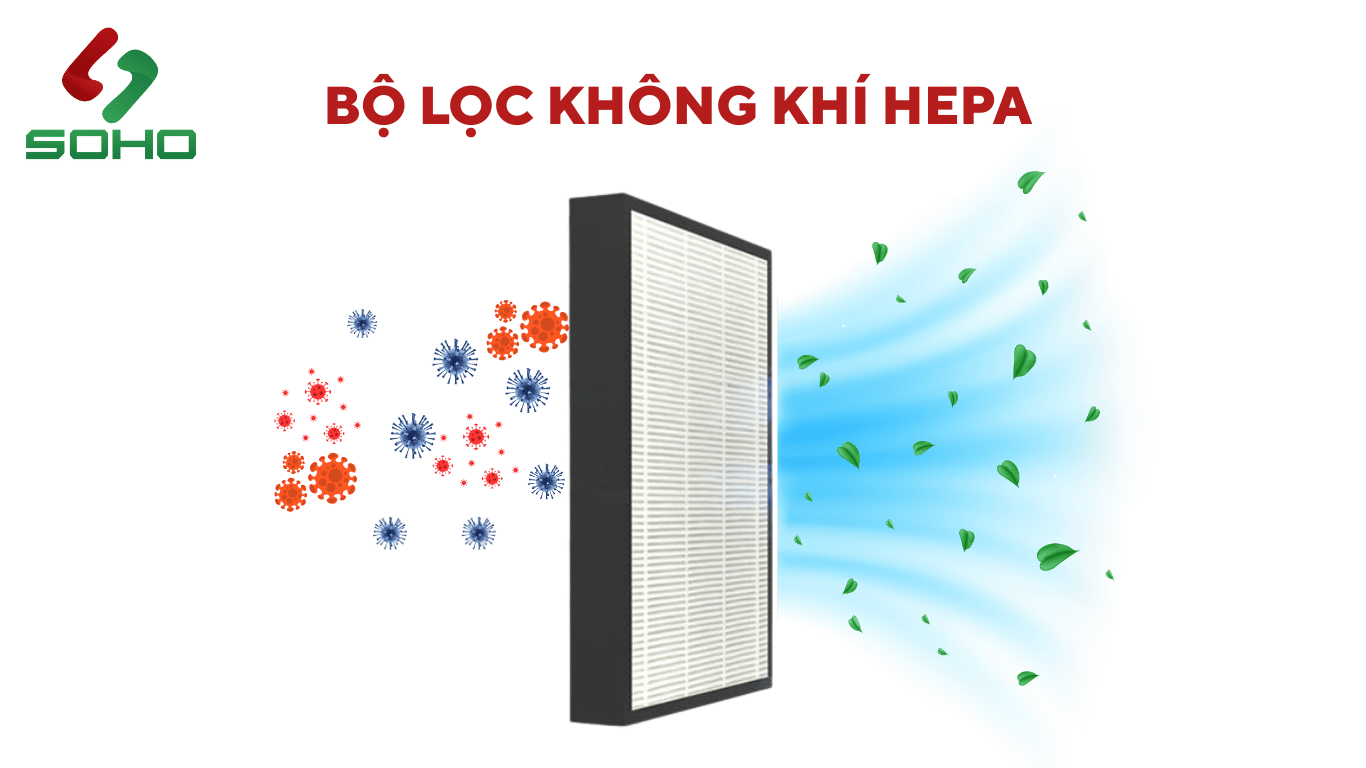 HEPA (High Efficiency Particulate Air) là bộ lọc không khí có khả năng loại bỏ tới 99,97% bụi mịn kích thước 0,3 micromet – tương đương PM2.5, PM1.0. Đây là loại bụi cực kỳ nguy hại cho sức khỏe hô hấp.