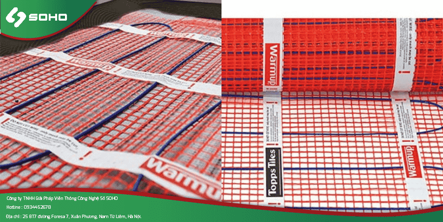 Cáp nhiệt sưởi sàn như: DIY Energia Daewoo, StickyMat Warmup, DCM-Pro Warmup là giải pháp phổ biến trong spa nhờ khả năng tỏa nhiệt nhanh và dễ lắp đặt.