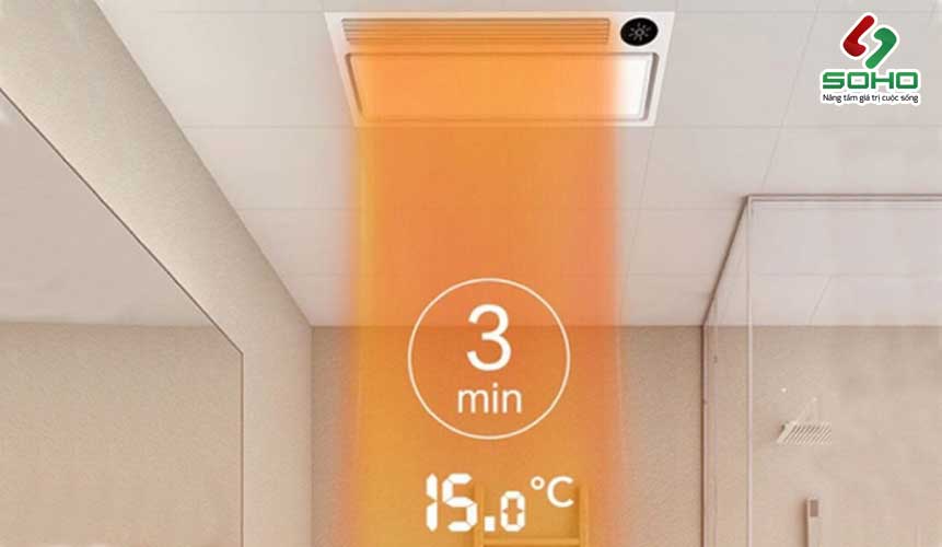 Sử dụng thay thế cho đèn sưởi, đèn Halogen, máy sưởi,.... Chúng có chức năng làm ấm không khí 1 cánh nhanh chóng và hiệu quả. Chỉ sau 3 phút bật chế độ sưởi, nhiệt độ có thể tăng lên 15 độ C. Không còn phải thấy sợ, ngại khi bước vào phòng tắm mỗi khi mùa đông đến.
