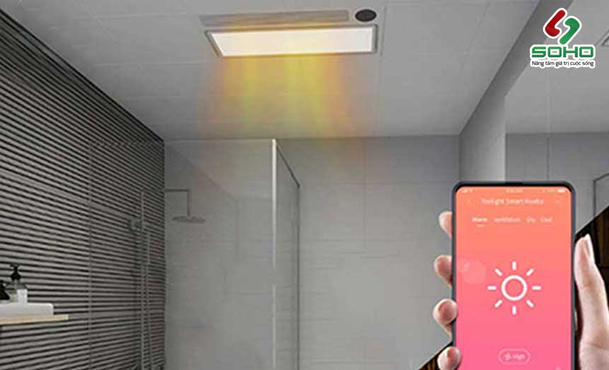 Ngoài bảng điều khiển cầm tay, người dùng hoàn toàn có thể điều khiển mọi chức năng của thiết bị thông qua app Mi Home. Chỉ cần tải app Mi Home về điện thoại, chọn tìm kiếm thiết bị máy sưởi. Sau đó có thể điều khiển toàn bộ chức năng của thiết bị trên màn hình điện thoại kể cả khi không có ở nhà. Đặc biệt, có thể điều khiển quạt sưởi nhà tắm thông qua giọng nói bằng việc kết nối Bluetooth với loa thông minh AI.