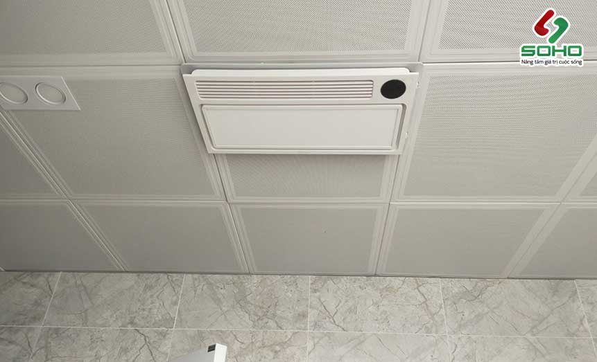 YLYB004 được sử dụng nhiều trong nhà tắm. Lắp đặt âm trần nối ống khá đơn giản. Người dùng có thể tự lắp đặt hoặc thuê thợ điện nước lắp đặt quạt sưởi nhà tắm. Ngoài ra, Soho cũng có lắp đặt hoàn thiện cho khách hàng nếu khách yêu cầu. Không chỉ là trần thạch cao, nếu khách hàng dùng trần bê tông cũng có thể lắp đặt được sản phẩm này. Chỉ cần bắt vít và dùng quang treo để cố định máy vào tường và nối ông ra ngoài là được.