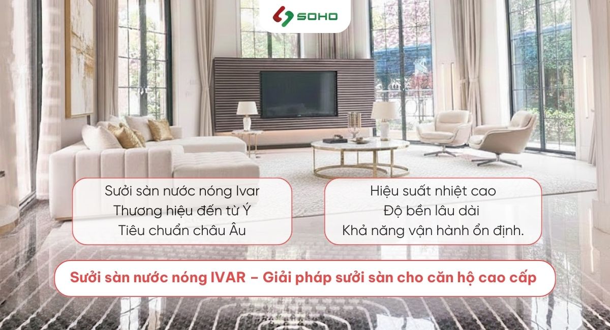 Trong các giải pháp sưởi sàn cho căn hộ cao cấp theo tiêu chuẩn châu Âu, sưởi sàn nước nóng luôn được đánh giá là phương án toàn diện và bền vững nhất. Đây cũng chính là giải pháp mà SOHO lựa chọn phát triển chuyên sâu, với hệ sưởi sàn nước nóng IVAR – thương hiệu hàng đầu đến từ Ý, được ứng dụng rộng rãi tại châu Âu trong các công trình nhà ở cao cấp, khách sạn và khu nghỉ dưỡng.