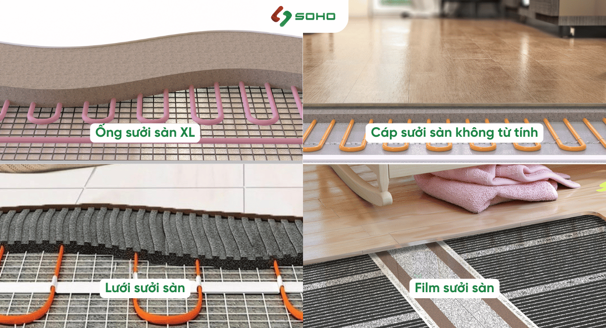 2. Các loại hệ thống sưởi sàn phổ biến hiện nay