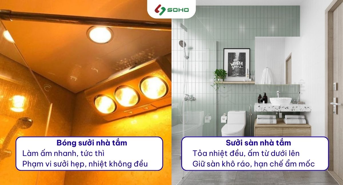 3. So sánh sưởi sàn nhà tắm và các giải pháp sưởi truyền thống