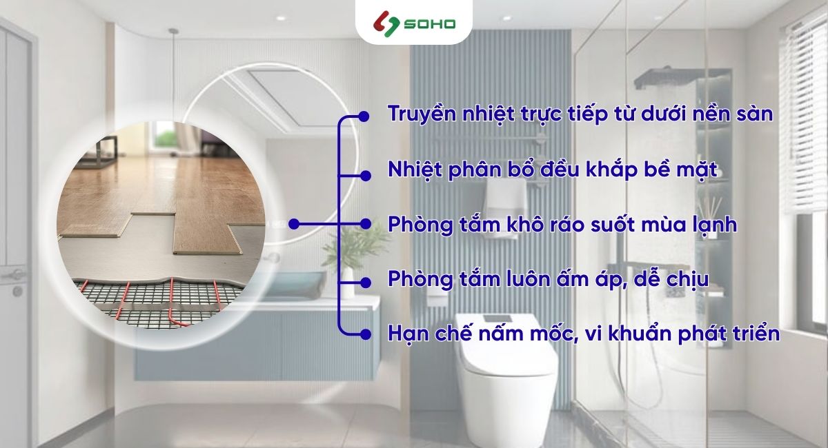 2. Nguyên lý sưởi từ sàn và khả năng kiểm soát độ ẩm trong phòng tắm