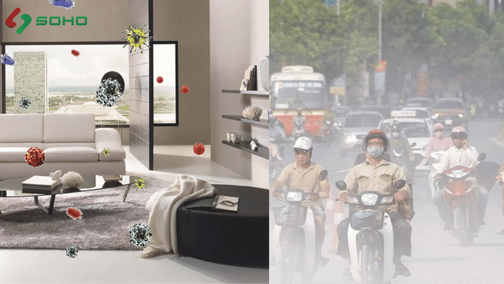 Nhà phố ở các đô thị lớn như Hà Nội, TP. Hồ Chí Minh phải đối mặt với ô nhiễm không khí nghiêm trọng từ khí thải giao thông, hoạt động công nghiệp và xây dựng. Với thiết kế kín, không gian hạn chế và thiếu cây xanh, nhà phố thường thiếu thông gió tự nhiên, dẫn đến không khí tù đọng và tích tụ CO2 từ các hoạt động sinh hoạt như nấu nướng hay sử dụng thiết bị điện tử. Đặc biệt, trong khí hậu nhiệt đới ẩm của Việt Nam, độ ẩm cao càng làm gia tăng nguy cơ phát triển nấm mốc và vi khuẩn, khiến chất lượng không khí trong nhà phố ngày càng suy giảm.
