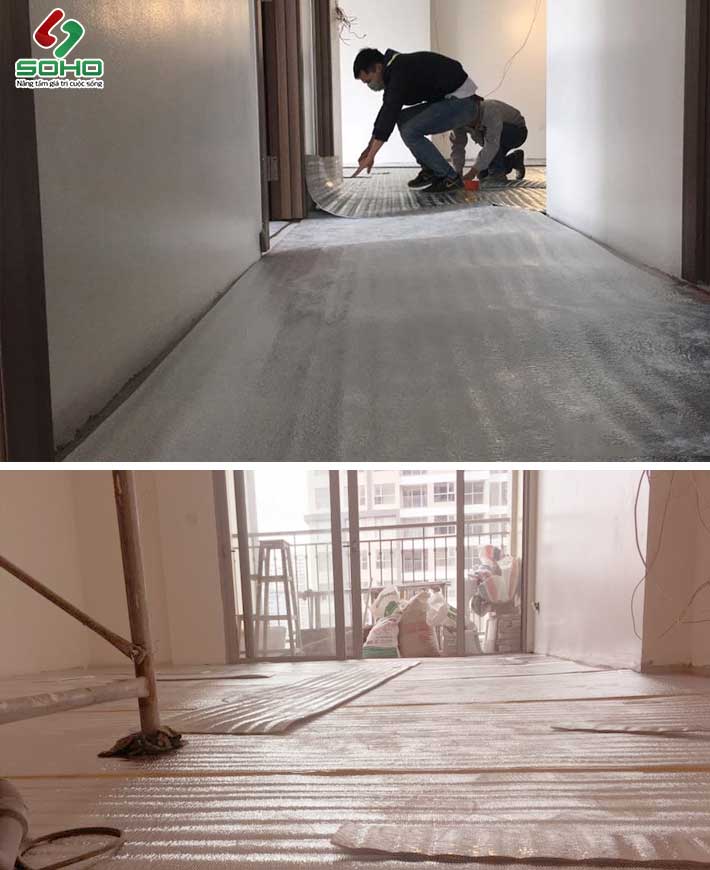 Một số hình ảnh thi công hệ thống sưởi ấm sàn nhà bằng film sưởi sàn tại chung cư Vinhomes Hàm Nghi: