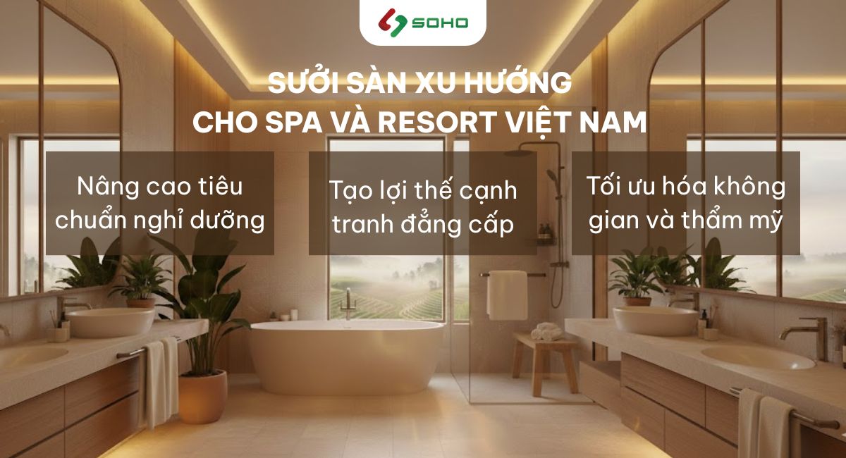 Bài viết dưới đây, SOHO sẽ phân tích chi tiết ứng dụng sưởi sàn trong spa, resort – nâng tầm trải nghiệm cao cấp, đồng thời lý giải vì sao giải pháp này ngày càng được ưa chuộng trong các công trình du lịch – nghỉ dưỡng hiện đại.
