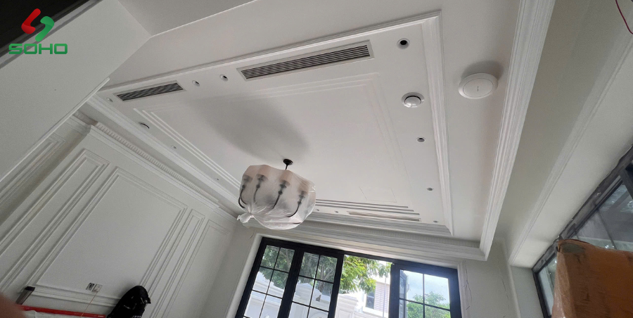 - Tối ưu thẩm mỹ: Đây là lúc lý tưởng để đi toàn bộ đường ống dẫn khí âm trần hoặc âm tường, giấu kín mọi chi tiết kỹ thuật. Sau khi hoàn thiện, bạn sẽ có một không gian tinh tế, gọn gàng, chỉ thấy những khe gió.