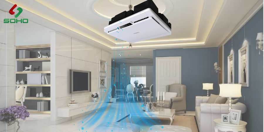 Máy cấp khí tươi âm trần: Giải pháp cao cấp, hoàn hảo cho villa có diện tích lớn. Hệ thống được giấu kín hoàn toàn, giúp tuần hoàn không khí toàn diện cho cả căn nhà.